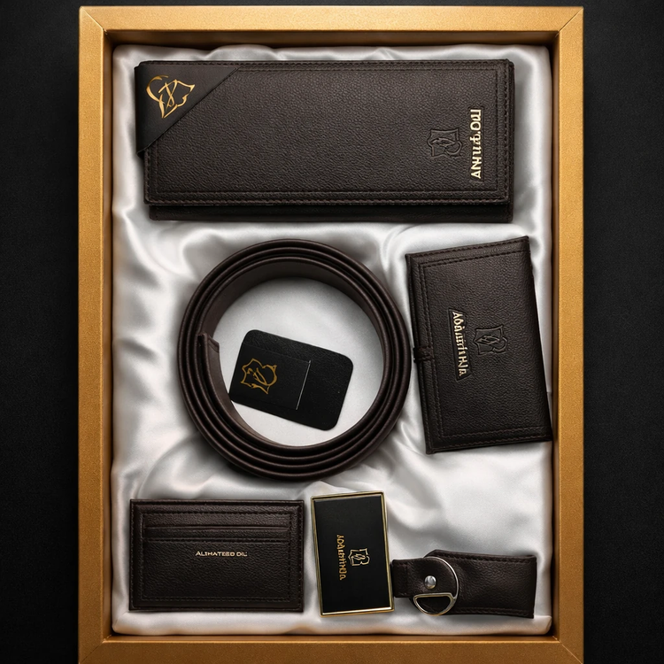 ست ۵ تیکه کیف و کمربند شامل کمربند کیف پول جاسوییچی،جاکارتی،جا کلیدی