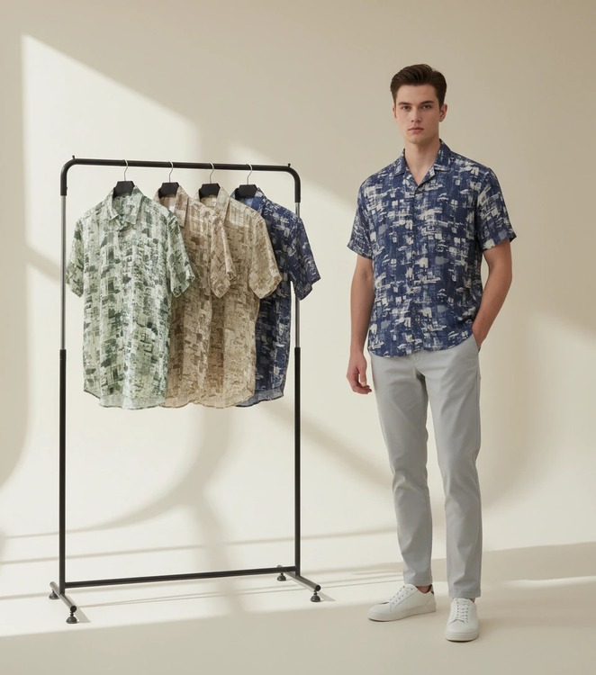 پیراهن مردانه آستین کوتاه طرح چاپی مدرن – چهار رنگ