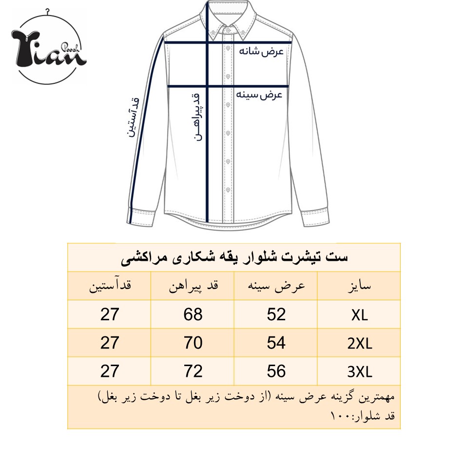 دوست عزیز، برای اینکه سفارشت کاملاً اندازهات باشه، لطفاً قبل از نهایی کردن خرید، جدول سایزبندی رو با دقت بررسی کن. این کار کمک میکنه بهترین انتخاب رو داشته باشی.